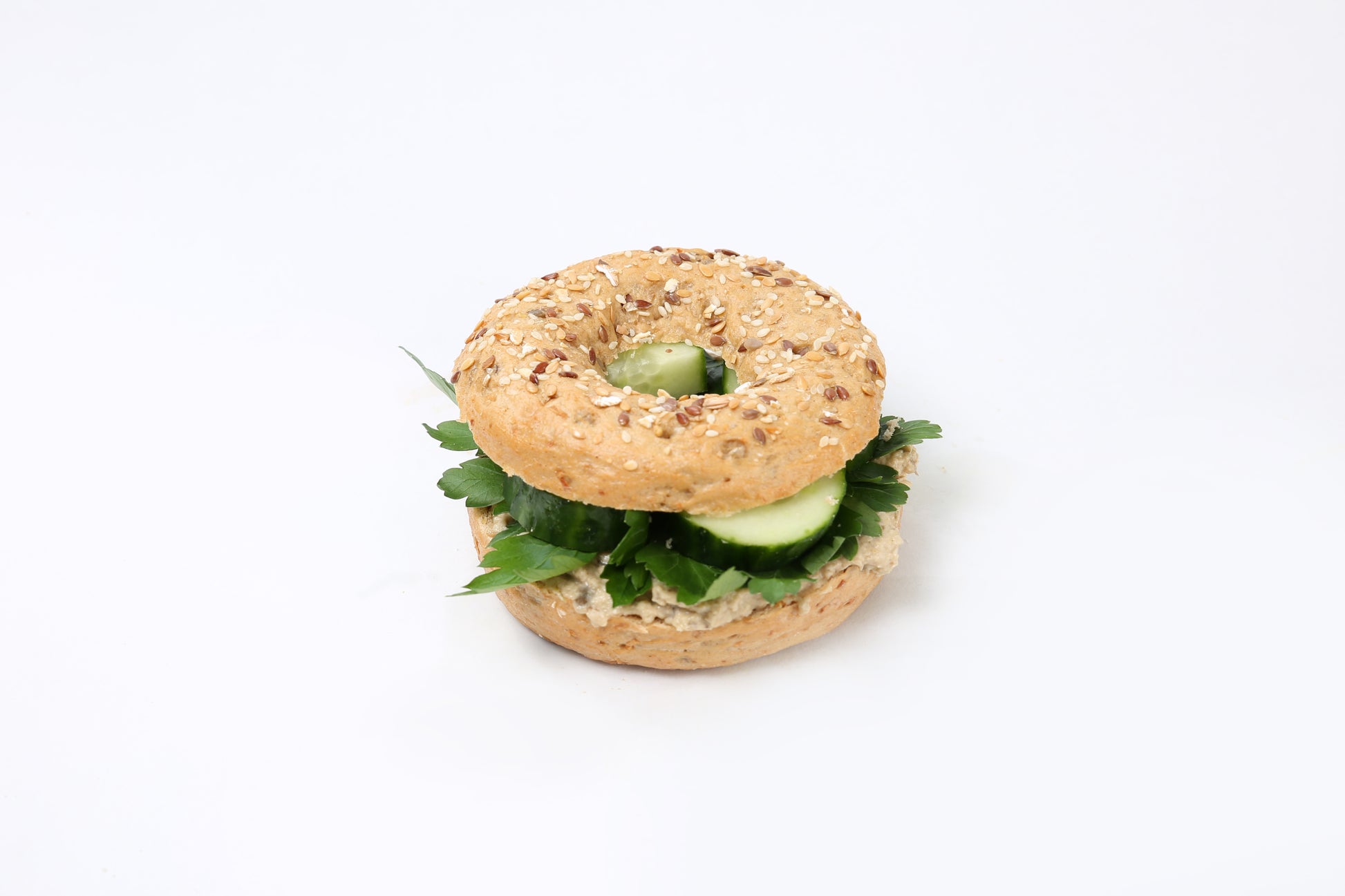 mit Baba - Ganoush (Auberginen-Creme), Petersilie und Gurken.